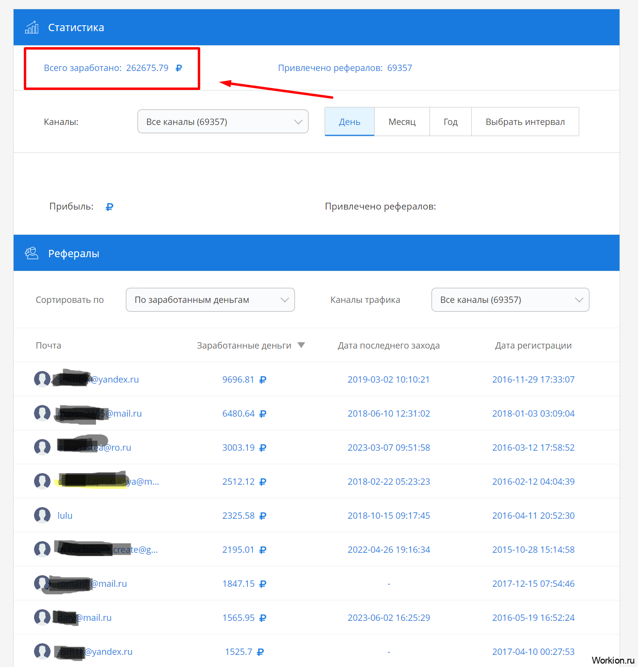 Можно посмотреть, сколько удалось заработать в качестве партнера за определенное время, проверить список рефералов и даже найти их по почте. Создавать сайт для привлечения пользователей не обязательно, есть много других способов: