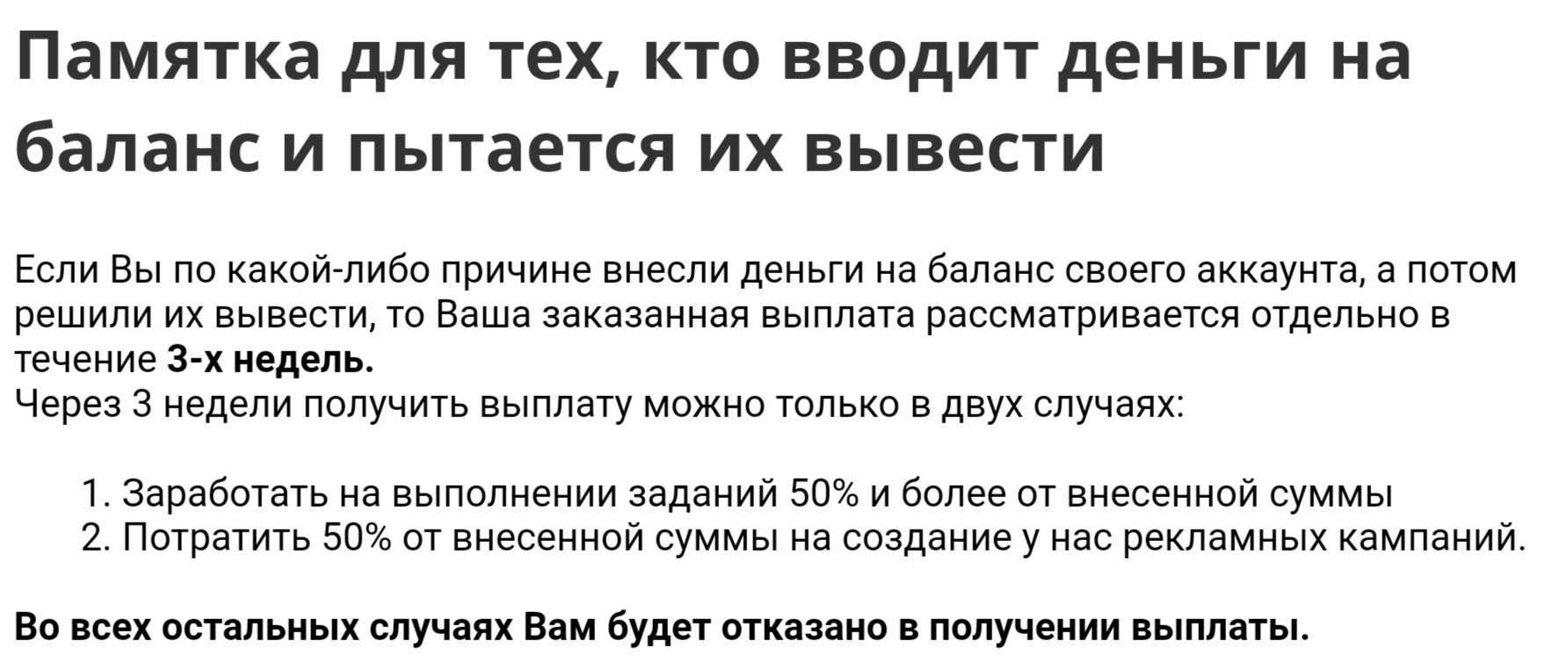 Для рекламодателей интерфейс стандартный. Нужно пополнить счет, выбрать платформу, указать ссылку и нажать на заказ. При этом можно указать требования к исполнителям, например возраст и пол. Задания засчитываются автоматически, но при необходимости на пользователей можно подать жалобу, например за отписку. Также отметим, что если пополнить счет, сразу вывести деньги не получится. Минимум половина суммы должна быть потрачена.