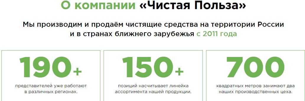 На сайте Франшизы Чистая Польза сказано, что фирма работает с 2011 года. Данные сведения не подкреплены юридическими документами. В отзывах пишут, что не слышали про такой бренд ранее, хотя за 10 лет продажи он должен стать популярным на территории РФ.