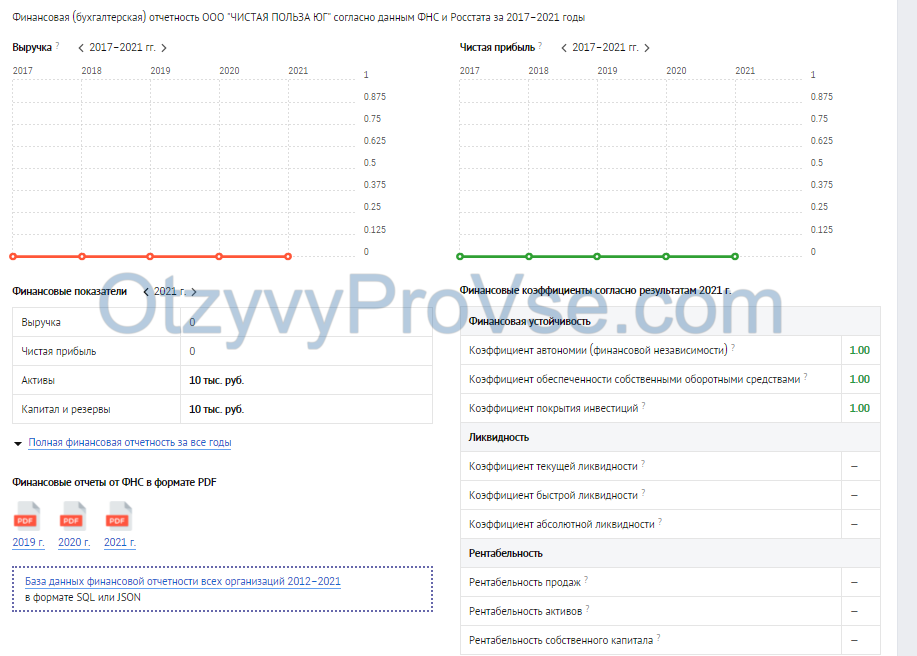 На портале checko.ru мы нашли только ООО “Чистая польза”, зарегистрированное в 2022 году в Калуге. Это может быть юридическое лицо, которое продает франшизу или партнер компании. Больший интерес представляют ее финансовые показатели. За 2021 год убытки фирмы составили 188 тысяч рублей. В отзывах часто пишут о том, что бизнес не приносит обещанных доходов, о которых говорят учредители.