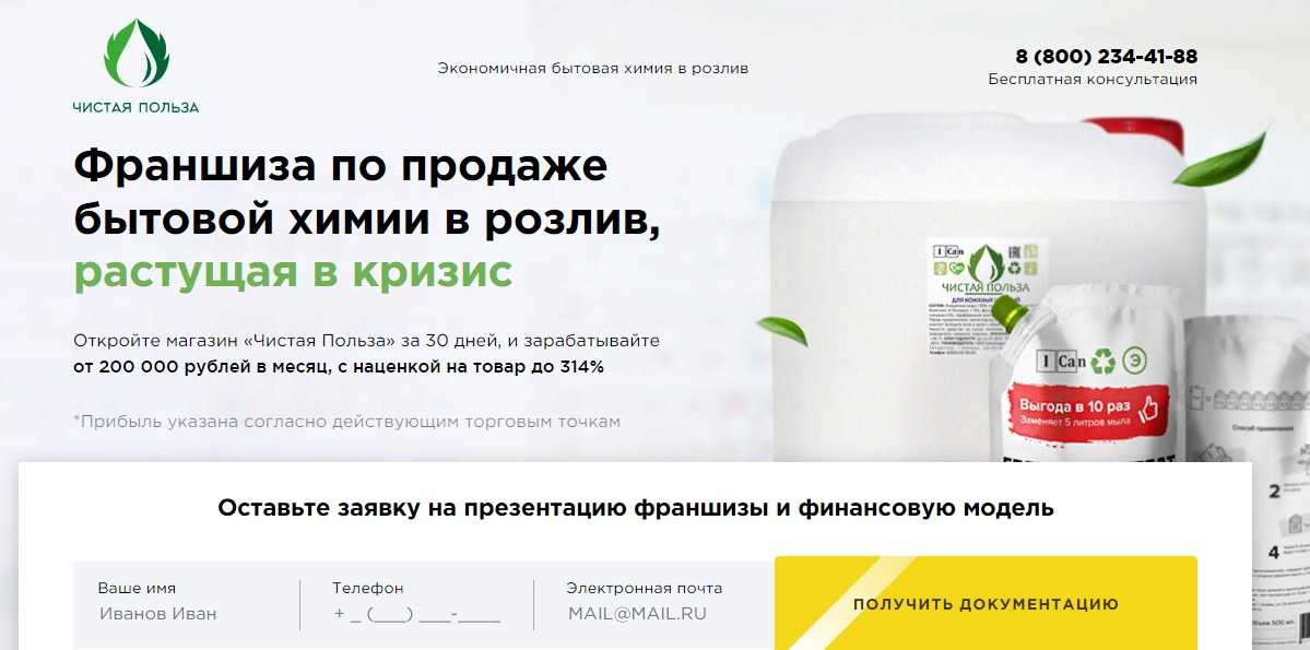 Конкуренты не могут соперничать с брендом Франшиза Чистая Польза по ценам продукции. Значит, покупатели уйдут туда, где дешевле. Франчайзи может использовать наценку в 314% от стоимости товара и заработать от 200 тысяч в месяц.