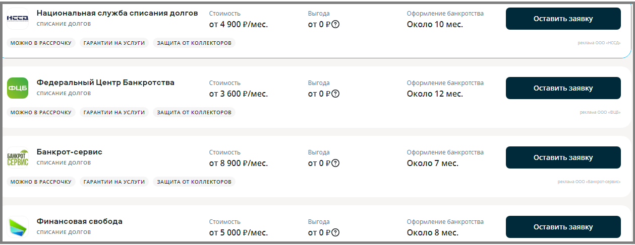 Какие фирмы предлагают услуги по банкротству физических лиц