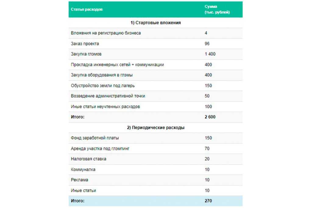 У нас выходит 2 600 000 рублей в качестве стартового капитала + 270 000 в качестве ежемесячных расходов. Учтите тот факт, что выше учтены расходы на среднестатистический проект эконом-класса. Эффектные глэмпинги с нестандартными глэмами потянут на 50%-70% дороже.