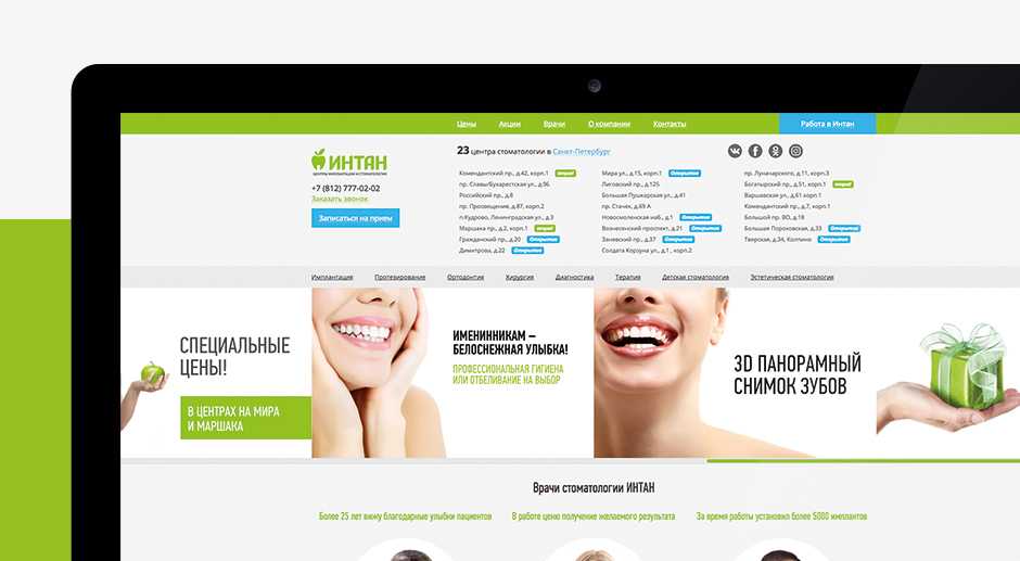 Заказчиком была поставлена сложная и амбициозная задача по созданию, продвижению и digital-поддержке информационного ресурса для сети клиник ИНТАН, расположенных в нескольких городах. Основная сложность заключалась в том, что необходимо было органично соединить несколько информационных пластов: промо-информацию о ценах, услугах и акциях, сведения о месторасположении, графике работы и преимуществах более чем 30 клиник, подробную стоматологическую энциклопедию.