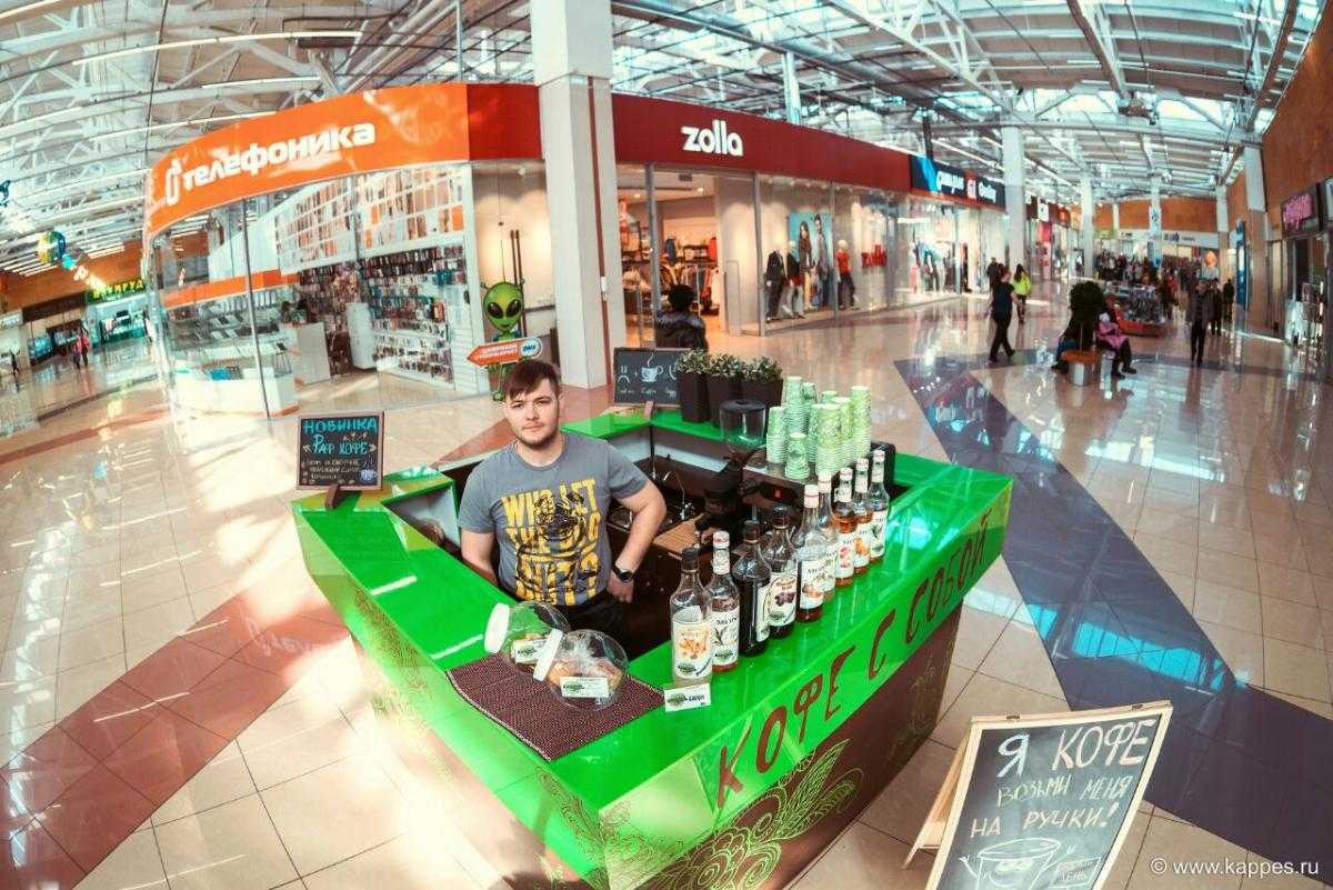 Помимо оплаты вступительного взноса придется потратиться и на строительство павильона (аренду места в ТЦ), а также оборудование (кофемашины, раздаточная линия, витрина, меню и др.).