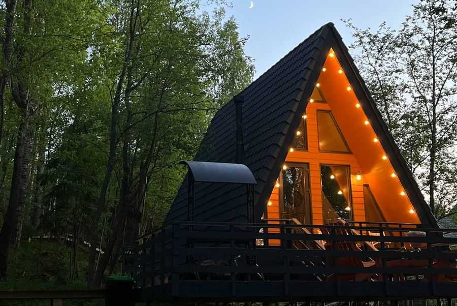 Эко-хутор «Избушки на опушке» находится в Ленинградской области. Причем часть «эко» в наименовании объекта — не случайность или дань моде. Всему есть логическое объяснение: владельцы проекта — Екатерина и Константин Клычковы — постарались использовать при его создании только эко-материалы и таким образом быть еще ближе к природе. А то, что домики А-фрейм своими очертаниями напоминают настоящие избушки из сказки, натолкнуло на мысль о названии. Своеобразной вишенкой на торте стала локация: строения расположены на настоящей опушке леса.