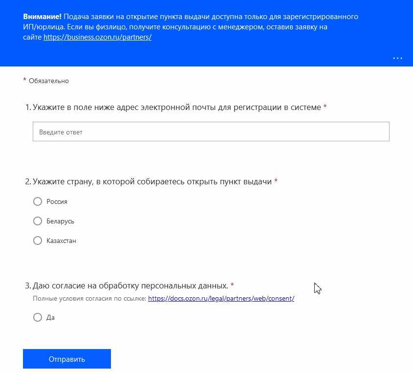 Инструкция по открытию ПВЗ Ozon