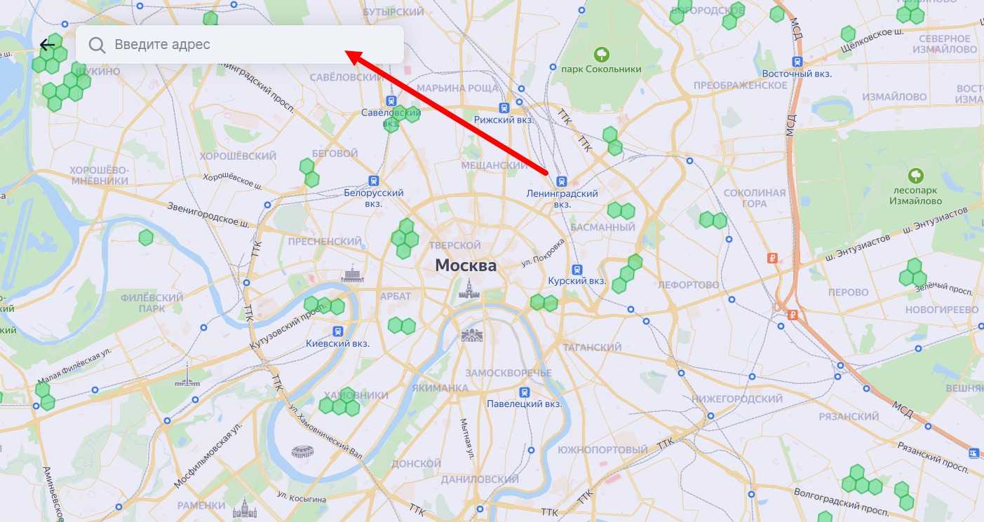 Карта локаций с указание тарифных зон. Можно ввести адрес и сразу перейти к просмотру здания
