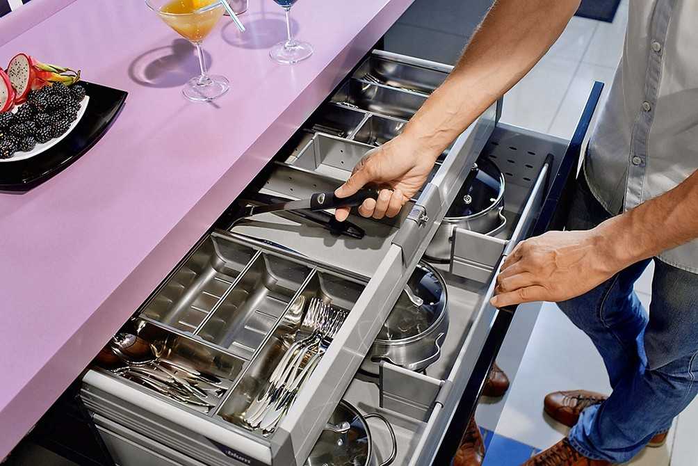 Чтобы точно знать сколько и каких отделений вам потребуется, нужно просчитать что и в каком количестве надо хранить на кухне. Желательно представить, как будет использоваться оборудование, посуда и прочие предметы.