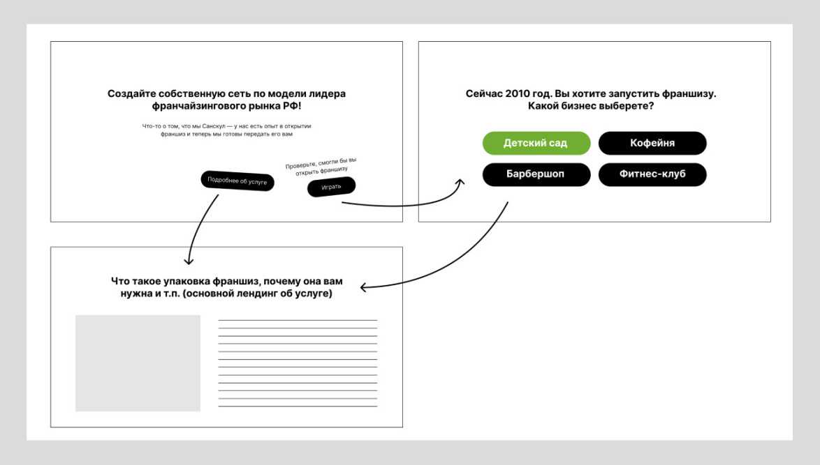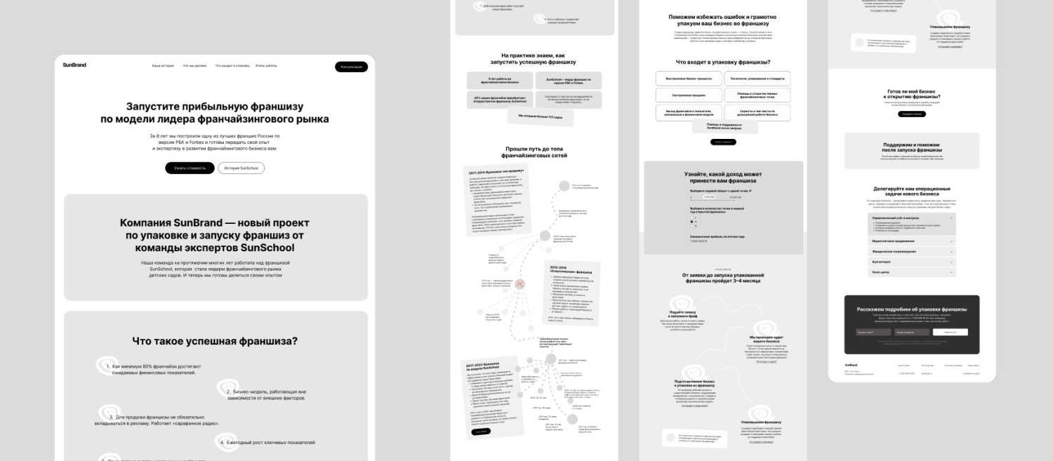 - Подчеркнуть опыт компании в сфере франчайзи.Для этого мы вводим большой блок, раскрывающий историю Sun School и периодически подчеркиваем, как этот путь ошибок помогает им открывать другие франшизы.