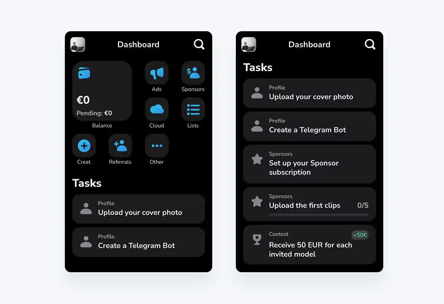 - My sponsors: этот вид подписки мы настраиваем сами. Можем указать цену от 5 до 50 евро. Тут самый качественный и горячий контент.