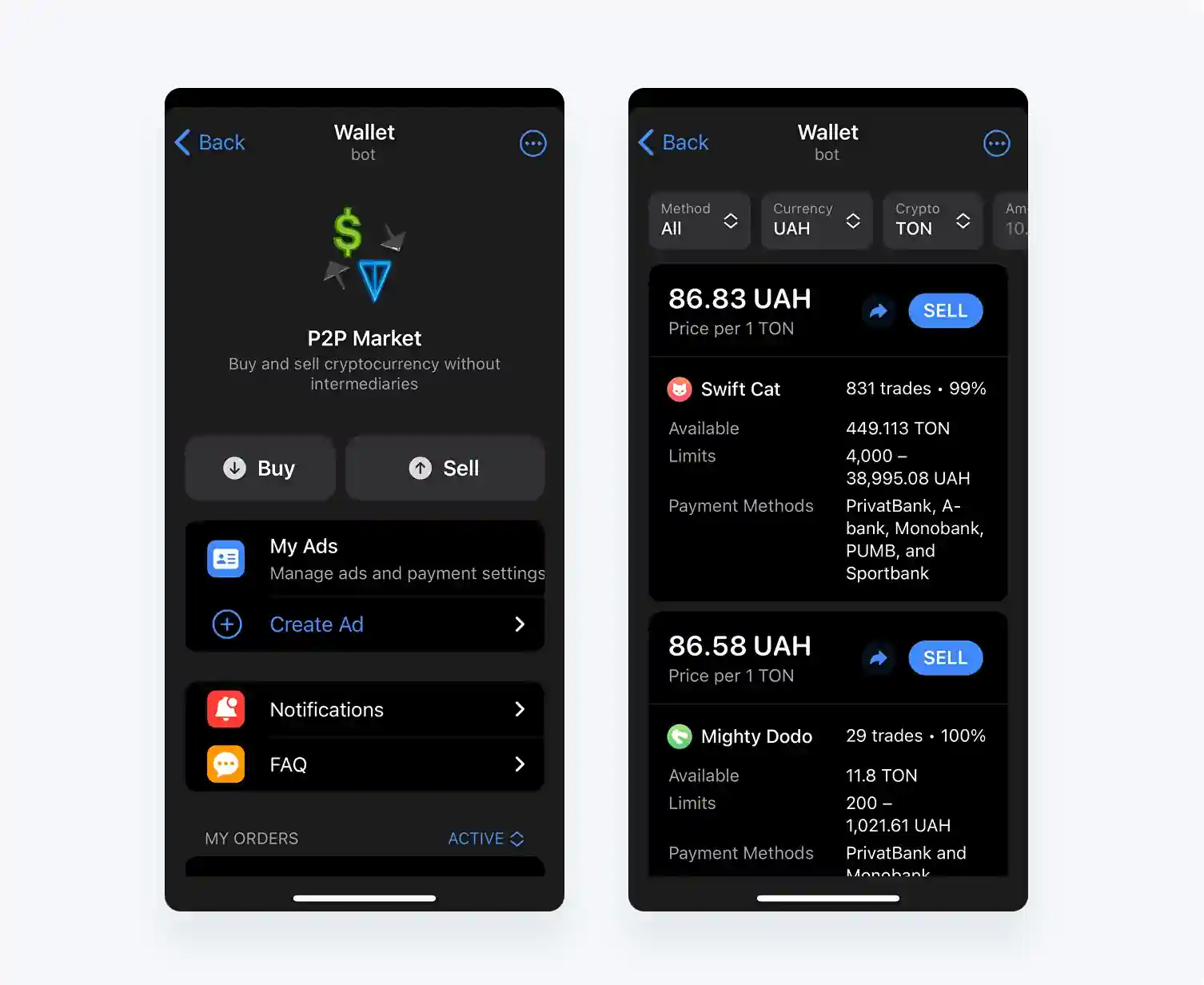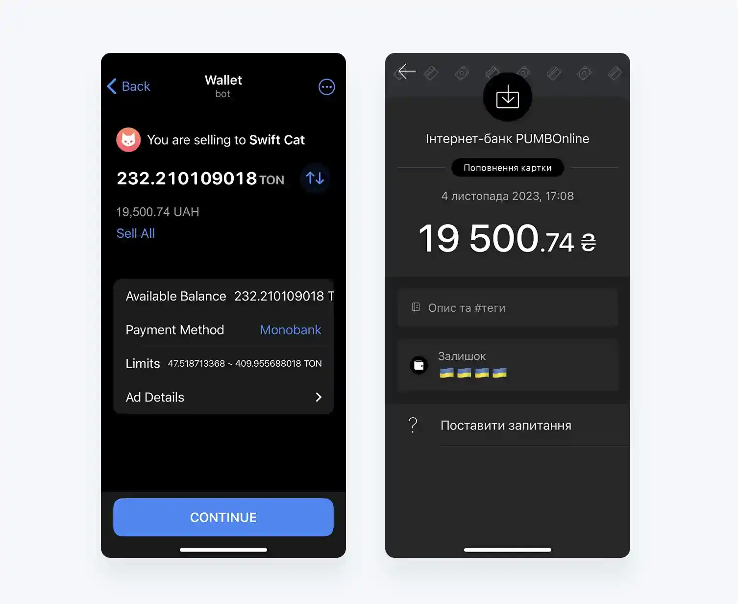 После того, как криптовалюта с Ton.Place поступит в кошелек, вы сможете её обменять на обычные деньги.