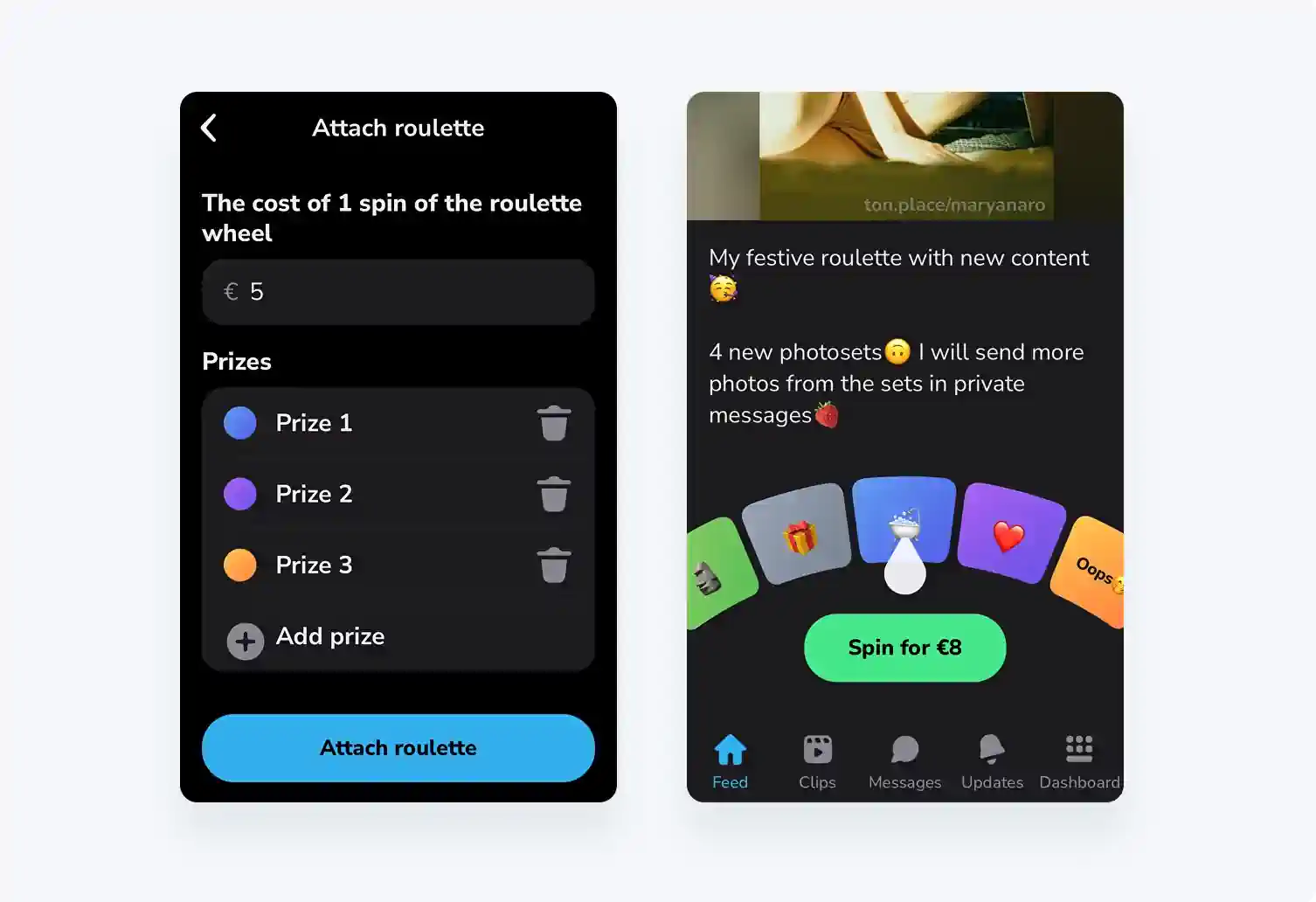 Рулетка это такая публикация, в которой сразу много разного контента, но пользователь получает доступ в случайном порядке заплатив за возможность «покрутить рулетку».
