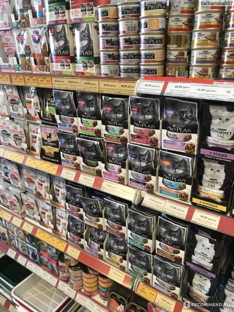 - Корма разных производителей, от эконом-класса до престижных брендов.