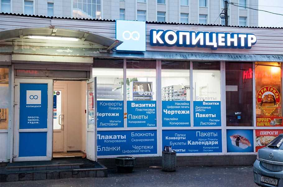 - Красочная вывеска с тематическими словами «копицентр», «распечатка», «ксерокопия» (выбор на усмотрение предпринимателя). Метод особенно хорош, если здание с копицентром находится на видном месте. Если оно расположено во дворах, то стоит установить персональный указатель или добавить информацию об учреждении на уже установленном указателе.