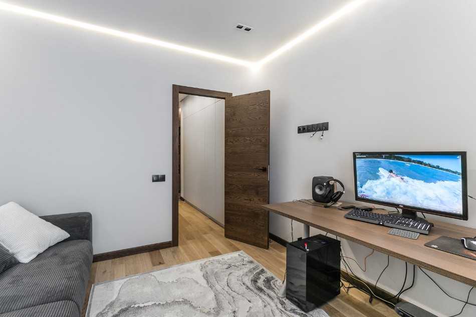 - Отдельная комната. Благодаря такой изолированной территории с дверью, получается добиться уединенной обстановки и более комфортного рабочего процесса, которому не будут мешать остальные члены семьи.