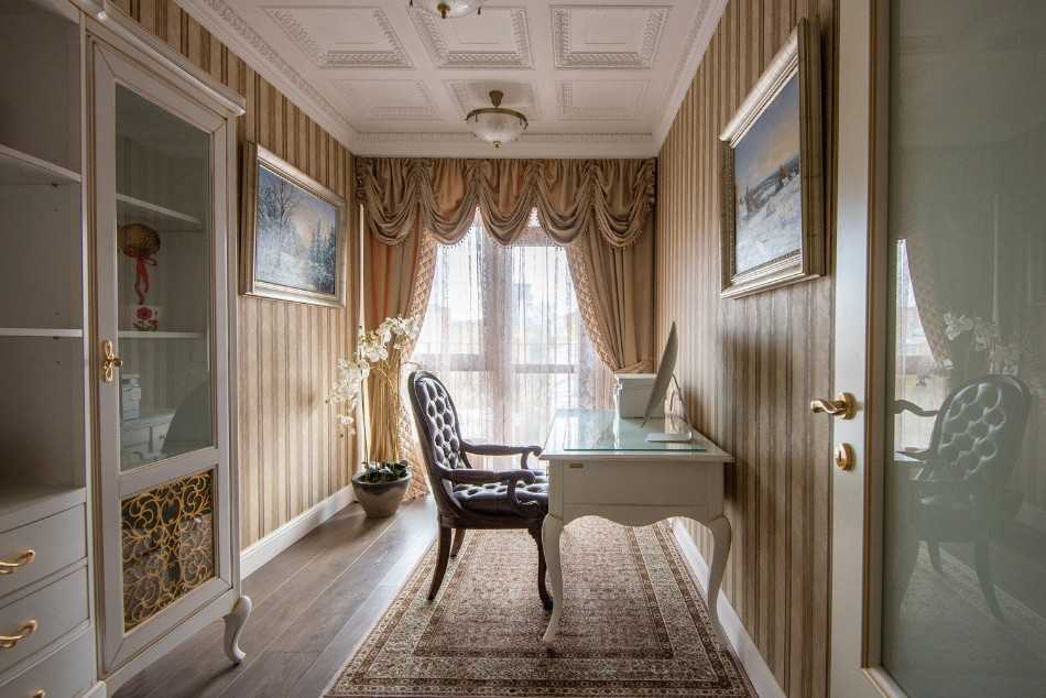 - На балконе. В случае если лоджия имеет достаточные габариты, ее можно переоборудовать под уютный кабинет, отличающийся замкнутой приватностью и большим количеством естественного света.