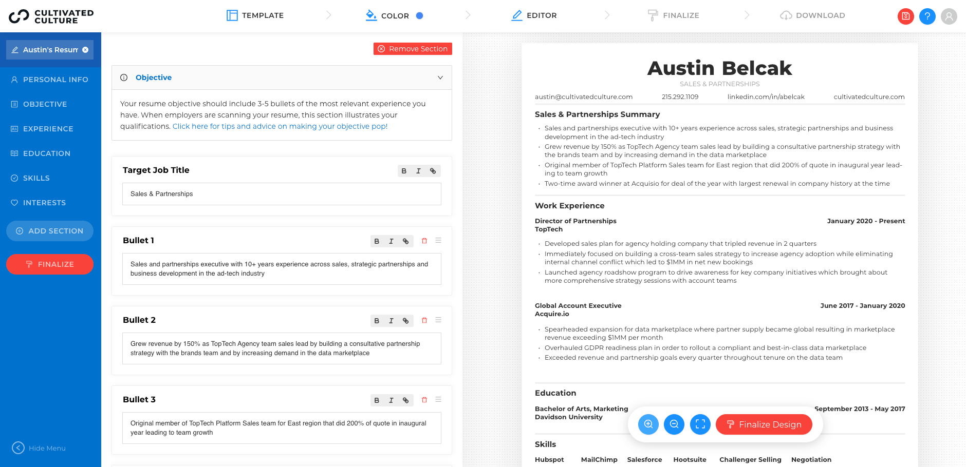 Edit, Customize, & Download All Of Your Resumes In One Place
