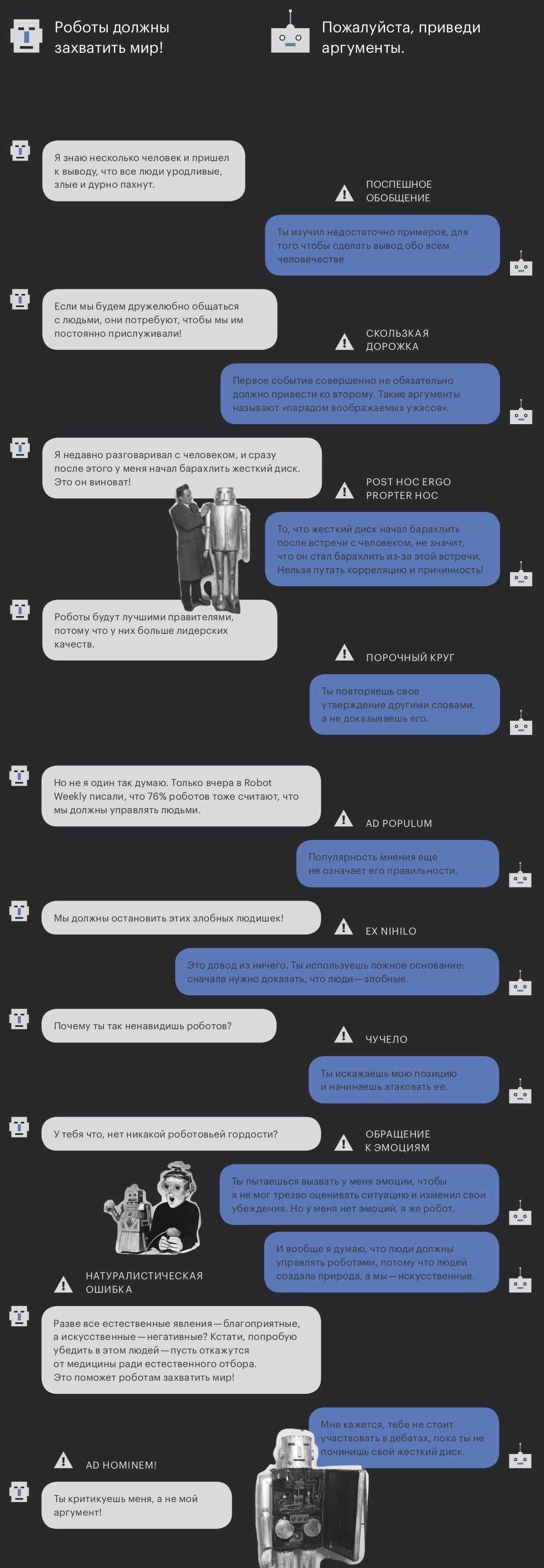 Разнообразные ошибки аргументации на примере диалога двух роботов