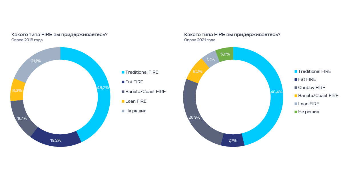 В 2018 году подходы Coast и Barista FIRE выбрали 15%. Спустя 3 года, их показатели снизились почти в 2 раза — до 8%.