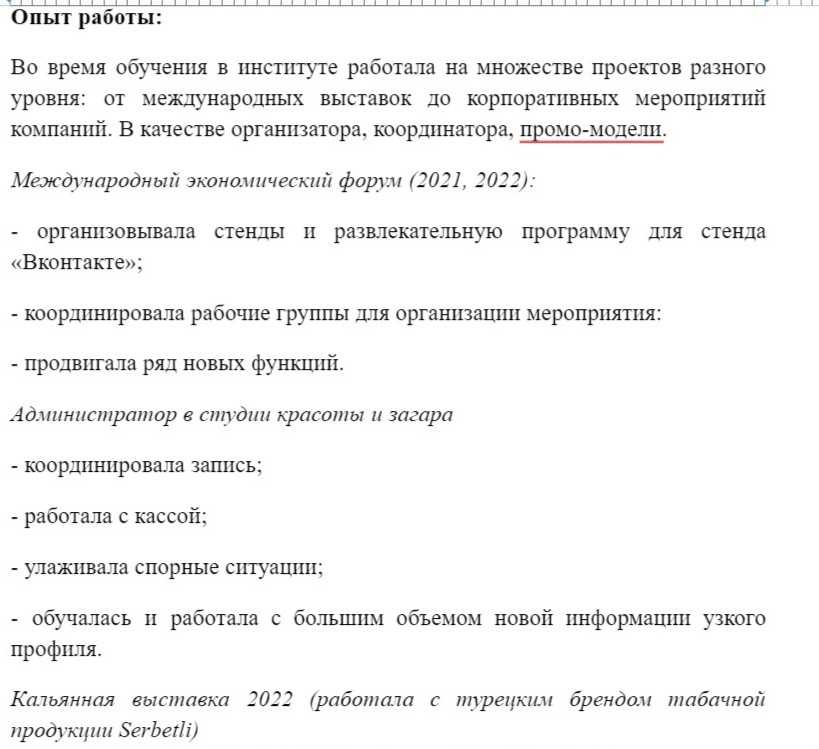 Очень важно, чтобы документ отвечал требованиям вакансии. На консультациях я прошу клиентов специально отобрать несколько типов вакансий и под них сделать несколько вариантов резюме