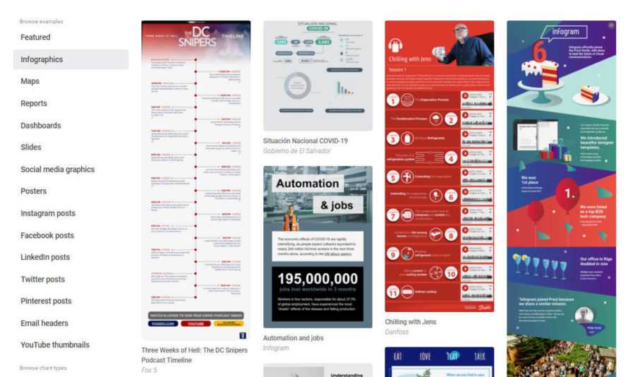 Кому подойдет: Если Canva напирает сразу на несколько элементов графического дизайна, включая редактирование фотографий и обработку видеороликов, то Infogram специализируется на визуализации статистики и лишь в последнюю очередь на нетипичных творческих экспериментах.