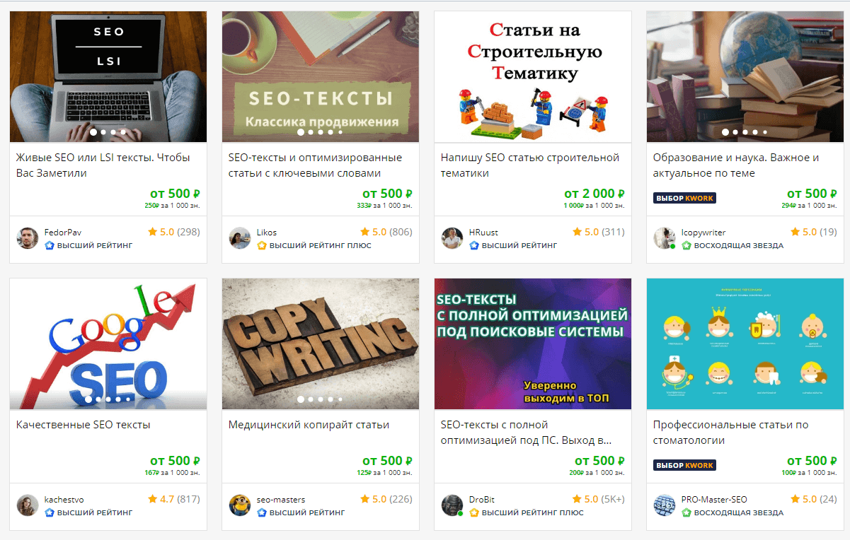 Магазин контента и биржа заказов. Регистрация на сайте происходит через почту. Оплата за работу зависит от рейтинга исполнителя. Каждое выполненное задание или хороший отзыв — плюс 1 к оценке. Чем выше рейтинг, тем больше заказов доступно к выполнению.