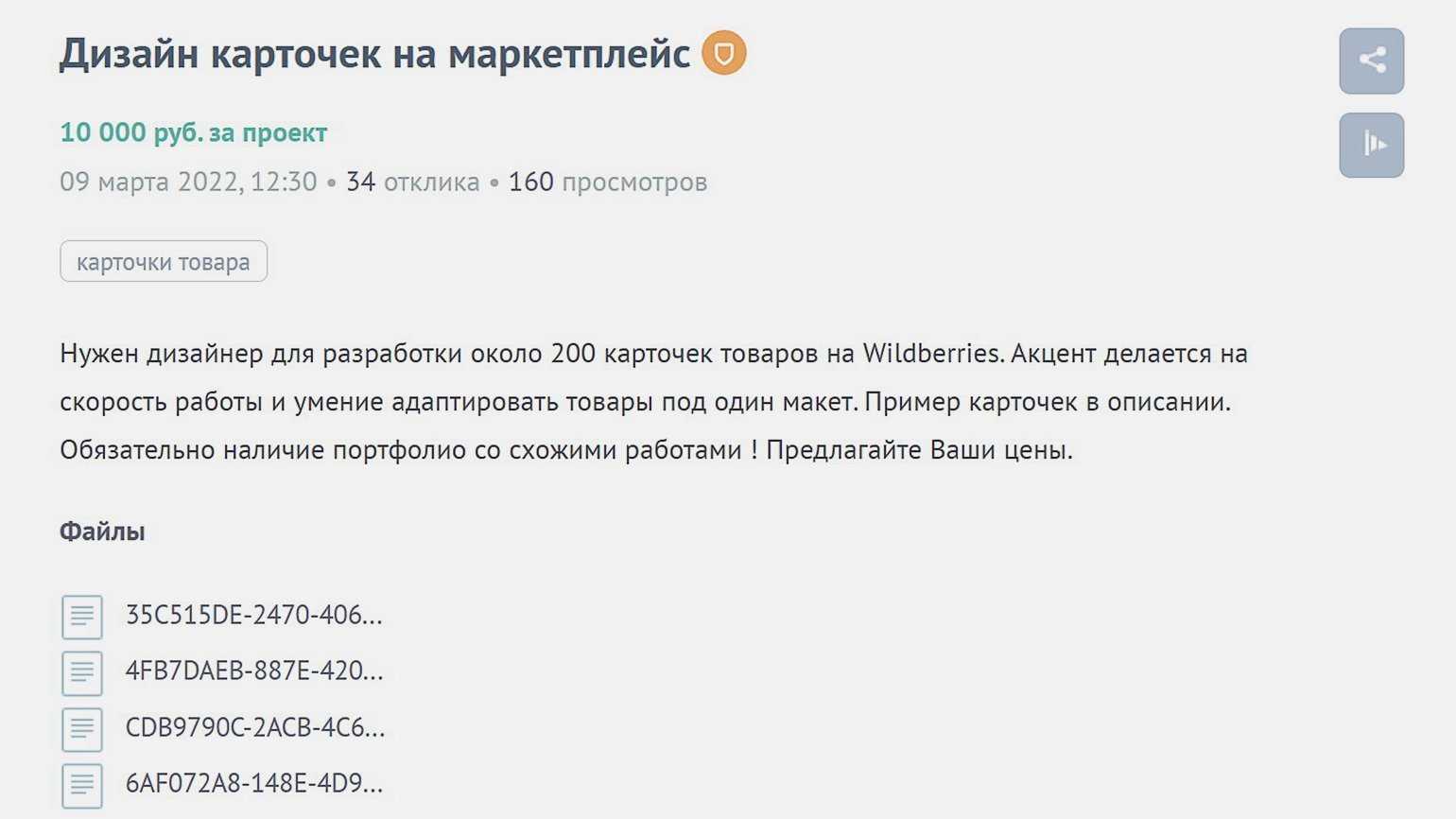 Пример заказа на фрилансеСкриншот: «Хабр Фриланс»