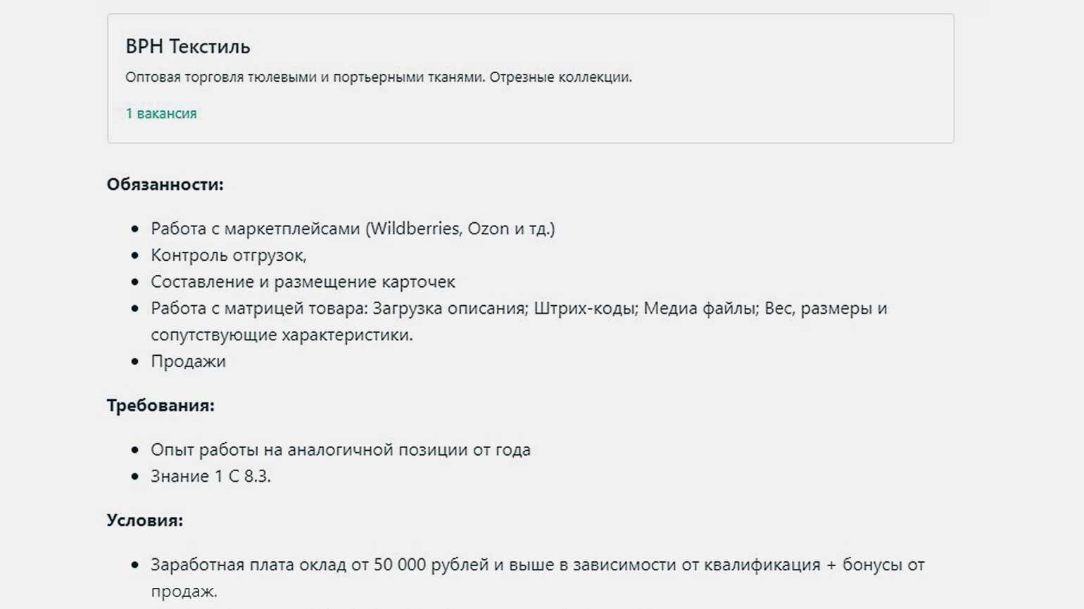 Пример типичной вакансииСкриншот: SuperJob