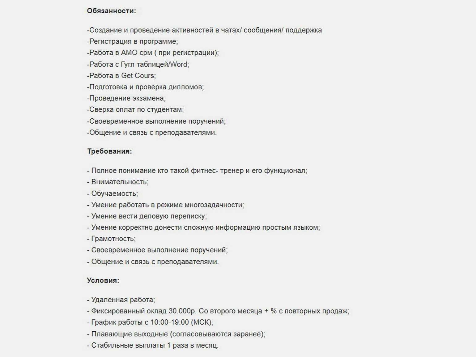 Так выглядят обязанности опытного куратора в онлайн-школеСкриншот: HeadHunter