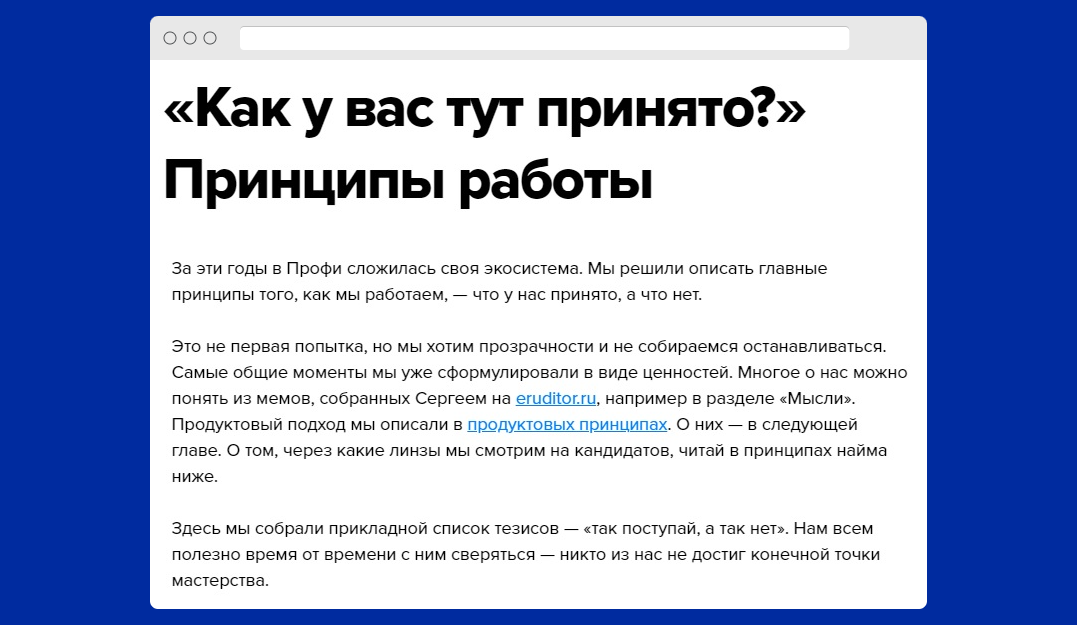 Мы рекомендуем всегда перед собеседованием изучать как можно больше информации о компании, так как это поможет показать вашу заинтересованность и сделать ответы на вопросы более осмысленными. Например, узнав, что в компании культ спорта и все сотрудники КМС по ДМС, навряд ли стоит на собеседовании говорить, что из спорта предпочитаете только литрбол.