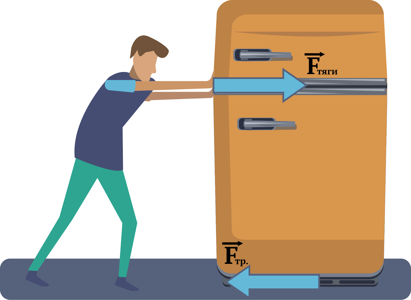Зовём на помощь друга, и вдвоём уже удаётся передвинуть холодильник. Получается, чтобы тело двигалось, нужно приложить силу, большую, чем самая большая сила трения покоя: