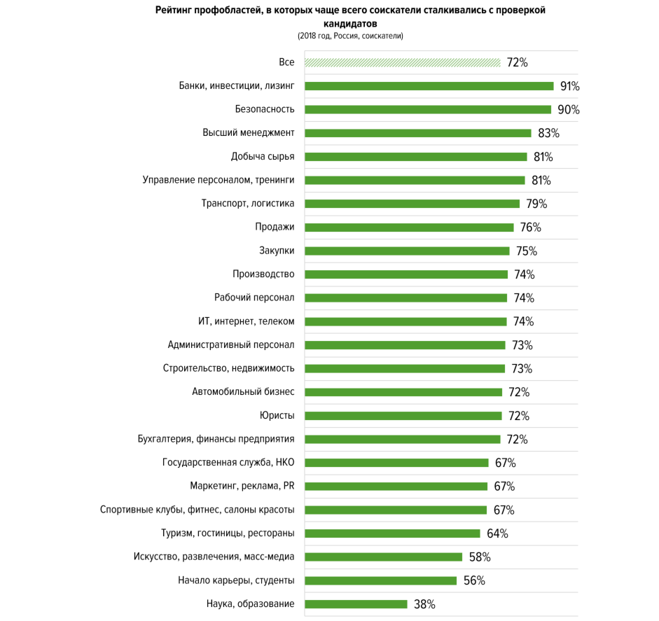 Особенно тщательно сотрудников отбирают в сферах, связанных с финансами, информационными технологиями, а также в силовых ведомствах.
