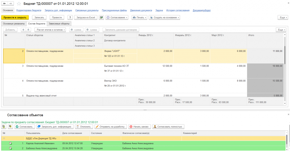 - управления процессом согласования БДДС;