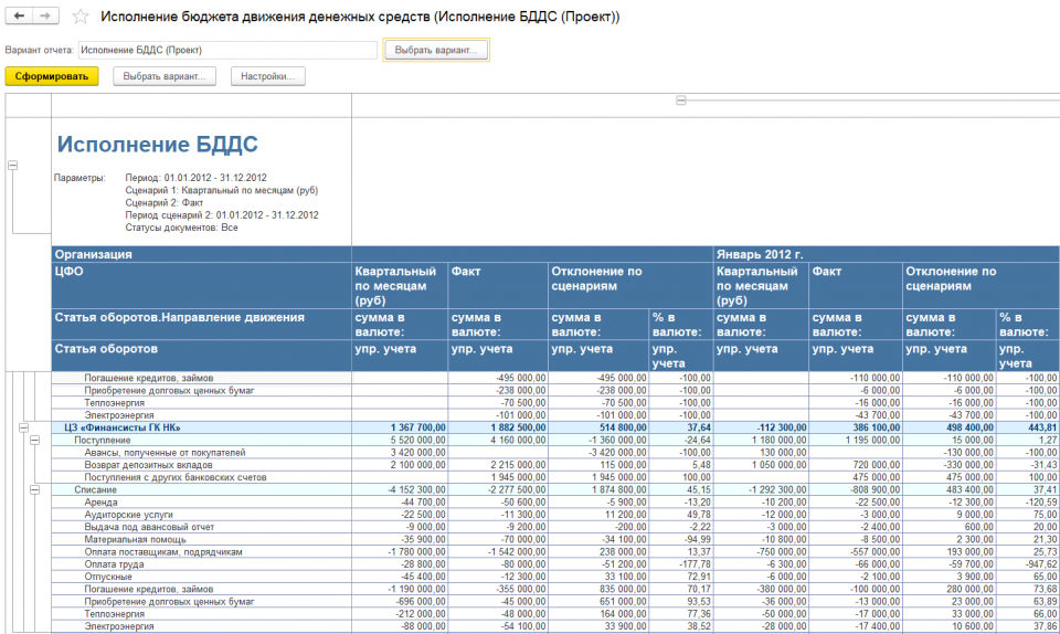 - формирования Бюджетов Движения Денежных Средств;