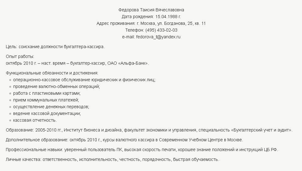Резюме на работу бухгалтера, бухгалтера-кассира, главного бухгалтера: готовые примеры