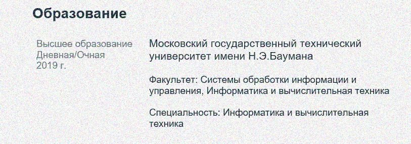 Образование. Опишите в хронологическом порядке где и на кого вы учились. Обязательно укажите квалификацию, курсы, повышение квалификации, ученую степень. Можно указывать государственные и частные учреждения образования.