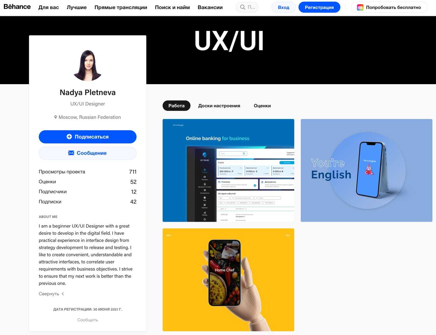 Разместить проекты можно в личном аккаунте в соцсетях, в Google Документах, на бирже фриланса, профильном сайте типа Behance или собственном лендинге — есть несложные бесплатные конструкторы типа Tilda, Ucoz или SITE123