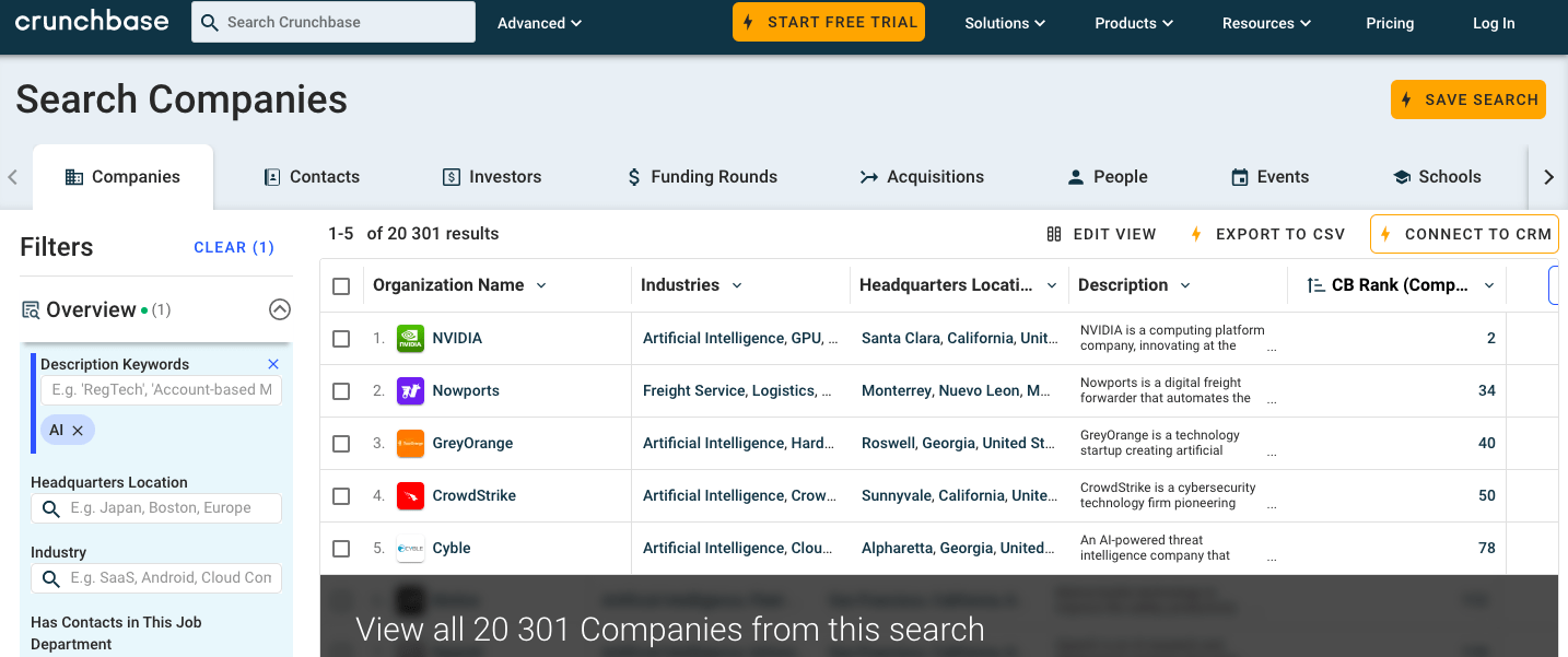 Компания Skymind Global называет специализацию AI-разработчика одной из самых востребованных в мире. С 2019 года спрос на специалистов увеличился на 32%, тенденция сохранится еще несколько лет. На мировой базе стартапов Crunchbase по запросу AI можно увидеть список из двадцати тысяч стартапов, развивающих ИИ.